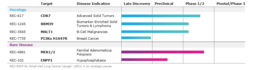 Recursion has numerous clinical-stage programs spanning oncology and, rare disease: